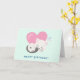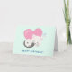Geburtstagskarte mit einer bezaubernden Grafik. Eine weiße Katze mit einem niedlichen Pfotenprint auf ihrem Fell. Schlafen friedlich. Ein großes rosa Herz hinter ihr und auch ein paar kleine Sterne. Minz grüner Hintergrund.