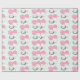 Umhüllungspapier mit einer schönen grafischen Abbildung. Eine weiße Katze mit einem niedlichen Pfotenprint auf ihrem Fell. Schlafen friedlich. Ein großes rosa Herz hinter ihr und auch ein paar kleine Sterne. Minz grüner Hintergrund.