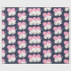 Umhüllungspapier mit einer schönen grafischen Abbildung. Eine weiße Katze mit einem niedlichen Pfotenprint auf ihrem Fell. Schlafen friedlich. Ein großes rosa Herz hinter ihr und auch ein paar kleine Sterne.