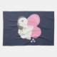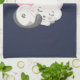 Küchenhandtuch mit einer bezaubernden Grafik. Eine weiße Katze mit einem niedlichen Pfotenprint auf ihrem Fell. Schlafen friedlich. Ein großes rosa Herz hinter ihr und auch ein paar kleine Sterne. Dunkelblauer Hintergrund.