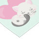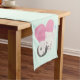 Ein Tischläufer mit einer bezaubernden grafischen Darstellung. Eine weiße Katze mit einem niedlichen Pfotenprint auf ihrem Fell. Schlafen friedlich. Ein großes rosa Herz hinter ihr und auch ein paar kleine Sterne. Minz grüner Hintergrund.