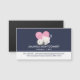 Magnetische Visitenkarten mit einer bezaubernden Grafik. Eine weiße Katze mit einem niedlichen Pfotenprint auf ihrem Fell. Schlafen friedlich. Ein großes rosa Herz hinter ihr und auch ein paar kleine Sterne. Dunkelblauer Hintergrund.
