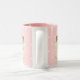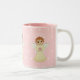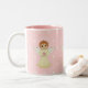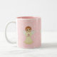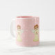 Schöne Tasse mit drei süßen Engeln mit Sternmuster auf rosa Hintergrund.