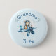 Ein niedlicher Teddybär in einem blauen Flugzeug fliegt durch die Wolken, mit ein paar Sternen über dem Kopf, umgeben von den Worten "Oma To Be". Alle Texte können einfach auf Ihre Informationen geändert werden.