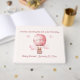 Ein niedlicher Teddybär in einem rosa Heißluftballon fliegt durch die Wolken mit ein paar Sternen darüber. Alle Texte können einfach auf Ihre Informationen geändert werden.