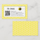 Diese kleinen, süßen Honigbienen-Detailkarten sind perfekt für alle, die dieses Jahr eine Babydusche haben. Das Design bietet niedliche Honigbienen mit gelbem Wabenhintergrund und leicht zu personalisieren Template-Formulierung. Einfach diese Detailkarten eintragen, wenn Sie Ihre passenden Babydusche-Einladungen schicken, können Ihre Gäste dann den QR-Code durchsuchen und auf Ihrer Website weitere Informationen über die Dusche finden. Die passenden Artikel finden Sie in der unten stehenden Kollektion..
