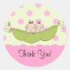Niedlicher Babyduschaufkleber mit einem süßen kleinen Pea Pod mit einem Baby Zwillingen auf einem rosa Polka gepunkteten Hintergrund. Perfekter Aufkleber für Zwillinge-Kinderfavoriten oder Einladungen für Umschlag Aufkleber & Geburtshinweise! Entsprechende Einladungen, Briefmarke & Dankeschön-Notizen sind in unserem Shop unter www.celebrateitinvites.com erhältlich. ©Jessica Weible