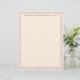Die süße und farbenfrohe kleine rosa Blume verläuft auf allen Seiten dieses in Pergament gehaltenen Briefkopfs. Sehr feminin und Vintag aussehend. Die Rückseite ist dieselbe Pergamentfarbe wie die Vorderseite, ohne Text oder Rahmen.