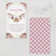Prepare to celebrate the upcoming arrival of your little pumpkin with our Sweet Little Pumpkin Autumn Baby Shower Books for Baby Enclosure card. This delightful design features beautiful burgundy and pink watercolor baby clothes hanging on a clothesline, along with charming florals and pumpkins. It captures the essence of fall while expressing the joy of welcoming a new baby. This card is the perfect way to set the tone for your autumn-themed baby shower and is available in multiple colors to suit your preferences. Customization is easy! Check out the matching set in our store.