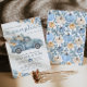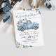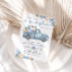 Herbstliche Babydusche in rustikalem Design mit Abholwagen, Kürbissen und Herbstlauben. Das dustig blaue und orangefarbene Farbschema wird durch klassische Serif-Schriftart- und Dainty-Skripte ergänzt.