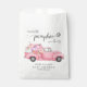 Steigen Sie mit unseren Sweet Little Pumpkin Pink Girl Baby Shower Fevor Bags Ihre Babydusche auf! Diese individuell gestaltbaren Gefälligkeitstaschen sind eine perfekte Mischung aus Charme und Eleganz, mit einem rosa Vintagen LKW, der mit pastellfarbenen Kürbissen und zarten Blumenbouquets übersät ist. Sie eignen sich ideal zum Befüllen mit Leckereien, Goodies oder kleinen Geschenken, um Ihren Gästen eine Erinnerung Ihres besonderen Tages zu geben. Diese Liebestaschen sind Teil der Sweet Little Pumpkin Baby Girl Shower Collection und sind ein Muss für ein zusammenhängendes, schön koordiniertes Event. Karo die passenden Artikel in der Kollektion, um Ihr Baby Dusche Look zu vervollständigen!