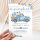Herbstliche Babydusche in rustikalem Design mit Abholwagen, Kürbissen und Herbstlauben. Das dustig blaue und orangefarbene Farbschema wird durch klassische Serif-Schriftart- und Dainty-Skripte ergänzt.