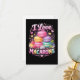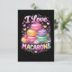 A colorful, whimsical illustration of stacked French macarons surrounded by fruit and hearts, celebrating joy, romance, and irresistible desserts.