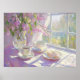 Dieses gemütliche und einladende Gemälde vereint einen gemütlichen Augenblick am Fenster, wo zwei delikate Teetassen und Untertassen neben einem Teller köstlicher Gebäck stehen. Das weiche Tageslicht dringt durch, beleuchtet die Szene und hebt die sanfte Schönheit einer Vase hervor, die mit frischen rosa Blume gefüllt ist. Die Komposition lädt Sie ein, einfache Freuden zu unterhalten und zu genießen - Komfort, Freundschaft und die ruhige Freude in den Alltagsmomenten. Es ist eine ruhige Feier von Wärme und Verbundenheit, perfekt für jeden, der friedliche Pausen und herzliche Ansammlungen liebt.
