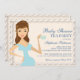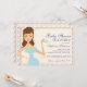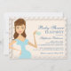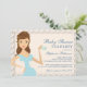 Eine hübsche, braun-mit Augen brünette Mami, um mit einer hübschen Tasse Tee zu toasten, in dieser modernen Party Einladung mit Baby Shower Tea. Die weiche Creme ist für jedes Tee-Party-Thema neutral.