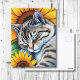 Sweet Napping Graue Katze und Sonnenblumen Postkarte