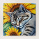 Sweet Napping Gray Cat and Sunflower Puzzle