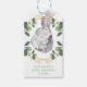 Dieses schlichte und dennoch elegante Baby Dusche-Fevor-Tag-Tag zeigt einen bezaubernden Babyelefanten und moderne Aquarellpflanzen in sanftem Grün & Gold. Es kommt mit einem passenden Blatt Muster auf der Rückseite. Fügen Sie Ihre Daten mithilfe der Vorlagenfelder hinzu. Wenn Sie gewollt haben, den Stil, die Farbe oder die Textplatzierung des Schriftartes zu ändern, klicken Sie einfach auf die Schaltfläche "Weitere Einstellungen vornehmen".