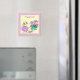 Hübsches Küken, farbenfrohe Eier und Blume in einem schönen Rahmen, um Happy Oaster zu wünschen... Ein schöner Magnet, um Ihre Sammlung hinzuzufügen und auf Ihrem Kühlschrank zu zeigen. Auch als Geschenk schmecken! :) Sie können auch Text, Schriftart, Größe und Farbe individuell gestalten.