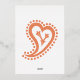 Mit dieser Hochzeitseinladung, die auf der rechten Seite eine pastellfarbene Korallengrenze mit einem Paisleyherzen aufweist, die jeweils von Polka-Punkten umgeben ist, eine stilisierte Weinrebe enthält und in echter Folie bedruckt ist, verleihen Sie Ihrem Anlass eine Touch Charme. Die links Kartenseite bietet viel Platz für alle Details für Ihre Veranstaltung. Dazu gibt es einen Beispieltext, der an Ihre Bedürfnisse angepasst werden kann. Ein großes Korallenpfeifenherz rundet das Ganze auf der Rückseite ab, um eine niedliche Note zu schaffen. Diese Einladung wird mit jedem anderen Sweet Paisley Hearts in Coral Produkt übereinstimmen, sodass Sie Ihre Veranstaltung so koordiniert gestalten können, wie Sie es wünschen.