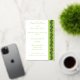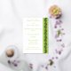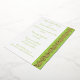 Mit dieser Hochzeitseinladung, die auf der rechten Seite eine pastellfarbene Peridot grüne Grenze aufweist, mit einem Paisleyherzen geschmückt ist, von denen jeder von Polka-Punkten umgeben ist und eine stilisierte Weinrebe enthält und in echter Folie bedruckt ist, verleihen Sie Ihrem Anlass eine Touch Charme. Die links Kartenseite bietet viel Platz für alle Details für Ihre Veranstaltung. Dazu gibt es einen Beispieltext, der an Ihre Bedürfnisse angepasst werden kann. Ein großes, pastellgrünes Paisleyherz rundet das Ganze auf der Rückseite ab, um eine niedliche Note zu schaffen. Diese Einladung wird mit jedem anderen Sweet Paisley Hearts in Peridot Produkt übereinstimmen, damit Sie Ihre Veranstaltung so koordiniert gestalten können, wie Sie es wünschen.