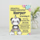 Feiern Sie ein magisches Fest mit diesem bezaubernden Panda Unicorn auf einem Regenbogen. Der Hintergrund ist gelb, mit rosa und blauen Akzenten. Personalisieren Sie Ihre Party-Daten.