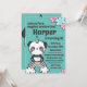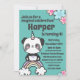 Feiern Sie ein magisches Fest mit diesem bezaubernden Panda Unicorn auf einem Regenbogen. Der Hintergrund ist aquamarin/blau grün, mit rosa und blauen Akzenten. Personalisieren Sie Ihre Party-Daten.
