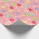 Pink verpacktes Papier gemustert mit süß pastellfarbenen Lollipops