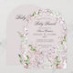 Feiern Sie eine besondere Mama-to-be mit dieser zauberhaften, gewölbten Babydusche, die mit zarten, süßen Erbsen-Blume in sanften Rosa-, Lavendel- und Weißtönen aufwartet. Die Blumengrenze schafft ein romantisches, vom Garten inspiriertes Aussehen, während das runde Format eine einzigartige und unvergessliche Touch verleiht. Ideal für einen Babybrunch, eine Dusche oder ein Sprinkle, verbindet diese Einladung Eleganz mit frischem Federgefühl. Eine nette Art, Freunde und Familie zu Ehren der bevorstehenden Ankunft zu treffen.