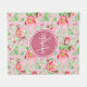 Eine rosa und grüne Blumendecke mit Apfelblüten. Dieses Blumendesign mit süßem Frühling wird durch das Hinzufügen von Namen und Monogramm als Initial zum tiefrosa Oktagon Abzeichen individuell gestaltet. Dies ist Teil der Apple Blossom Floral Rapture Rose Monogram Collection.