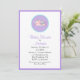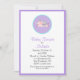 Weiße und lila Babydusche, oben mit einem Lavendel- und Aquakulturm, mit einem Elefanten im Stil eines süß rosa Karussell. Ein lila mit weißem Polka Dotmuster, bedeckt den Rücken. Personalisieren Sie alle Textfelder für Ihre Babydusche-Veranstaltung.