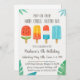 Machen Sie Ihren Geburtstag mit dieser lebendigen Popularität-Party Einladung cool! Mit bunten Eis-Leckereien und spielerischen Sommerelementen ist dieses lustige Design perfekt für Kinder, die alles süß Liebe haben. Einfach mit Ihren Party-Infos personalisieren - ideal für Feiern im Freien, Poolbereich oder Hinterhof!
