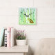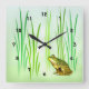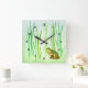 Diese Wanduhr zeigt einen grünen Frosch mit einem gelben Bauch, der zwischen den Gräsern am Teich sitzt. Sie scheint einsam zu sein, als sei sie für ihren Prinzen Charming gewartet. Vielleicht ist sie eine Märchenprinzessin. Die Zahlen können gelöscht werden, wenn ein einfacheres Design bevorzugt wird.