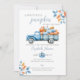 Diese stilvolle Babydusche lädt mit rustikalem Herbst, Herbstlauben und einem niedlichen blauen LKW voller Kürbis ein. Auf der Rückseite befinden sich Ihr spezielles Foto und ein QR-Registrierungscode. Entwickelt von Thisisnotme©
