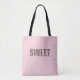 Genießen Sie unsere Rosa und Weiß Stripe Tote Tasche mit Regenbogensprinkle Design. Ideal für Strand, Yoga-Klasse oder Shopping.