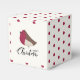 Einfach und stilvoll Robin und Red Bow Kissen. Sauberes modernes Design mit Robin und Weihnachten Gruß vorne. Auf der Rückseite gibt es einen roten Bogen und Platz, um nach Namen und Stimmung anzupassen. Die anderen Seiten der Schachtel sind mit Polka-Punkten bedeckt.