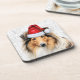Spaß Untersetzer Set für die Person, die ihre Rough Terrier Liebe. Diese trägt eine Weihnachtsmannmütze für eine stilvolle Herangehensweise an die Urlaubssaison und sitzt scharf gegen einen verblassten WOOF Hintergrund, um Ihre Zuhause oder Ihr Büro mit saisonalen Liebhaber Freude zu dekorieren.