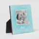 Sweet Shark Baby Easel Plaque hat einen Aqua-Wasser-Hintergrund mit einem bezaubernden Hai und Baby. Fügen Sie Babys Foto und Geburtsinformationen für eine persönliche Touch hinzu.