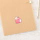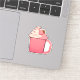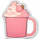 Eine niedliche, rosafarbene Tasse mit flauschiger Peitsche und frischer Erdbeere. Niedlicher und gemütlicher Aufkleber