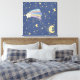 Sweet Sleep Moon & Stars Illustration Denim Blue Leinwanddruck