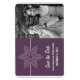 Mit diesem Sweet Snowflake Foto Save the Date Premium Magnet verkünden Sie Ihre Hochzeit im Winter oder im Urlaub. Mit einem zarten und eleganten weißen Schneeflocken und einem dünnen Streifen auf einem soliden lila Hintergrund ist dieses lustige Design leicht zu gestalten. Fügen Sie einfach Ihre eigenen Foto- und Hochzeitsdetails in die beiliegenden Textfelder ein oder klicken Sie auf "Anpassen", um weitere Personalisierungsoptionen zu finden.