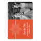 Mit diesem Sweet Snowflake Foto Save the Date Premium Magnet verkünden Sie Ihre Hochzeit im Winter oder im Urlaub. Mit einem zarten und eleganten weißen Schneeflocken und einem dünnen Streifen auf einem soliden orangefarbenen Hintergrund ist dieses lustige Design einfach zu gestalten. Fügen Sie einfach Ihre eigenen Foto- und Hochzeitsdetails in die beiliegenden Textfelder ein oder klicken Sie auf "Anpassen", um weitere Personalisierungsoptionen zu finden.
