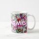 Ein festliches Design mit einer Mischung aus niedlichen Schokoladenschneemännern in lebhaften Farben. Tasse mit weißem, rotem, grünem, rosa und lila, individualisierbarem Design für Sie, um Ihre eigenen Texte, Bilder und Ideen zu personalisieren. Erstellt mit einem Originalfoto und digitalen Techniken von Jess Perry.