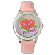 Kinderuhr aus Edelstahl mit rosa Lederarmband