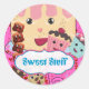 Niedlicher Backkuchen, Schokolade, Kuchen und Kekse Aufkleber Niedlich Tief Himbeerrosa, Blassrosa Gelb und Blau Niedlich gebackene Waren mit Adorable Eyes und süße kleine Mundstücke, alle mit Ihrem Firmennamen auf einem rosa und blauen Klammer Platzhalter mit blauer whimsikaler Schrift.