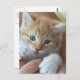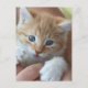 niedliches kleines Kätzchen mit Ingwer-Fell und großen blauen Augen - fest gehalten