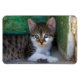 Kätzchen im Schatten an einem heißen Tag neben einer grünen Mauer