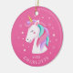 Niedliches Weihnachtsgeschmuck mit süßem Einhorn, türkisblau, rosa und lila Mund, gerahmt mit dunkelrosa Blume-Set.