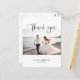Hochzeit Foto danke Ihnen Postkarte. Dunkelschwarz-weiße Kalligraphie. Zentriertes Foto mit Namen und Datum. Die Rückseite ist leer für eine persönliche Nachricht mit einem kleinen Herz unten. Entworfen von Kimberly Brett.