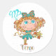 Niedliches Jungfrau-Schild mit einem lockenhaarigen Mädchen in Retro-1960er-Farben.